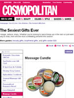 Summary: Cosmo rounds up the sexiest gifts this holiday season, and features the Ignite Me Soy Massage Candles from Good Vibrations.