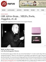 Summary: Nerve presents their annual holiday gift guide from “experts” by asking the random cast of characters they solicited sex advice from all year long. The list includes bike messengers, French people, MILFS, and Good Vibrations’ very own sex shop employee, Mark.