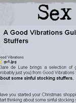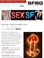 “Sigh. I guess I'm supposed to be Christmas shopping right now. But all I can focus is on is another week of sweet and wild sex events – what's a girl to do? In the spirit of at least trying to pretend I give a damn, however, here are five fantastic places to buy sexy somethings for the naughties on your list. And the weekly sex events, of course. Good Vibrations – duh, if you read this column at all, duh. Various Bay Area locations. www.goodvibes.com”
