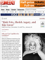 “Think of a milestone or institution in San Francisco's queer community, and Rink Foto has documented it with his camera. His work is placed with two other artists in the group exhibit "Rink Foto, Sholeh Asgary, and Kija Lucas." Although remarkably different, their work is connected by the exploration of identity. Asgary uses what she calls "abstracted watercolor" to render portraits of those who express themselves through plastic surgery, in pursuit of the perfect face. The results are not so much graphic as they are conceptual, but her disturbing point is made clear. Lucas, on the other hand, excludes the individual, focusing rather on objects in the most personal of settings -- kitchen, hallway, backyard, bed. The ghosts of daily existence haunt her black-and-white photographs through the visible evidence of invisible people.”