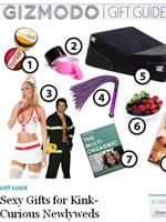 Summary: Gizmodo rounds up the perfect kinky accoutrements for newlyweds and kink enthusiasts, including edible body powder, bondage tape, suede whips, sex furniture, couples rings and more.