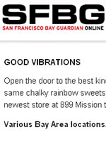 "Open the door to the best kind of trouble with these dangling pasties, made from the same chalky rainbow sweets as traditional candy necklaces. Swing by Good Vibe's newest store at 899 Mission to check out the sex toy vanguard's downtown flavor. Various Bay Area locations. www.goodvibes.com"