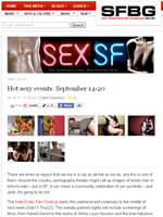 "This fall's Good Vibrations-sponsored Short Erotic Film Competition, at the Castro Theatre, signaled a new era for this feisty event, which started six years ago as a small local affair. For the first time, international finalists outnumbered domestic ones – and to tast the excitement, the crowd was in full-Castro form. …the real party was downstairs in the theatre, where 800 attendees voted for the best Indie Erotic Short Film of the night. Of course, the toughest competition came from the irreverent and often scatological onstage banter of a trio of drag queens, led by the legendary Peaches Christ and moderated – or rather, refereed – by the equally legendary Carol Queen."